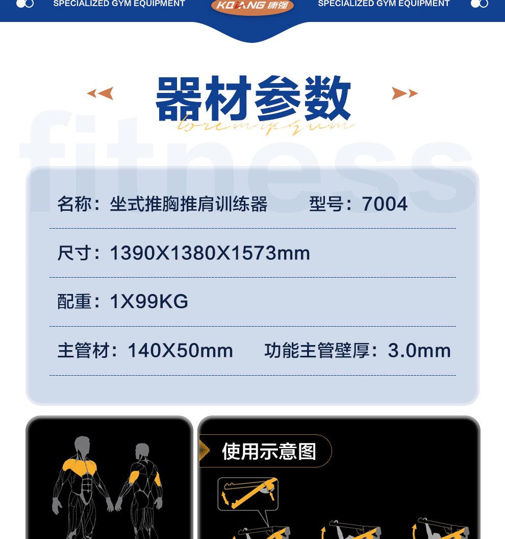 康強(qiáng)坐式推胸推肩訓(xùn)練器7004室內(nèi)專業(yè)力量專項(xiàng)運(yùn)動(dòng)健身器材